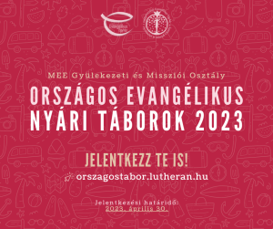 Az idei évben hét országos tábort szervezünk! Az elmúlt évek tábor kínálata idén egy új és egy korábbi tematikájú táborral bővült. Jelentkezni az orszagostabor.lutheran.hu felületen lehet. Kérjük, táborainkat ajánlják…